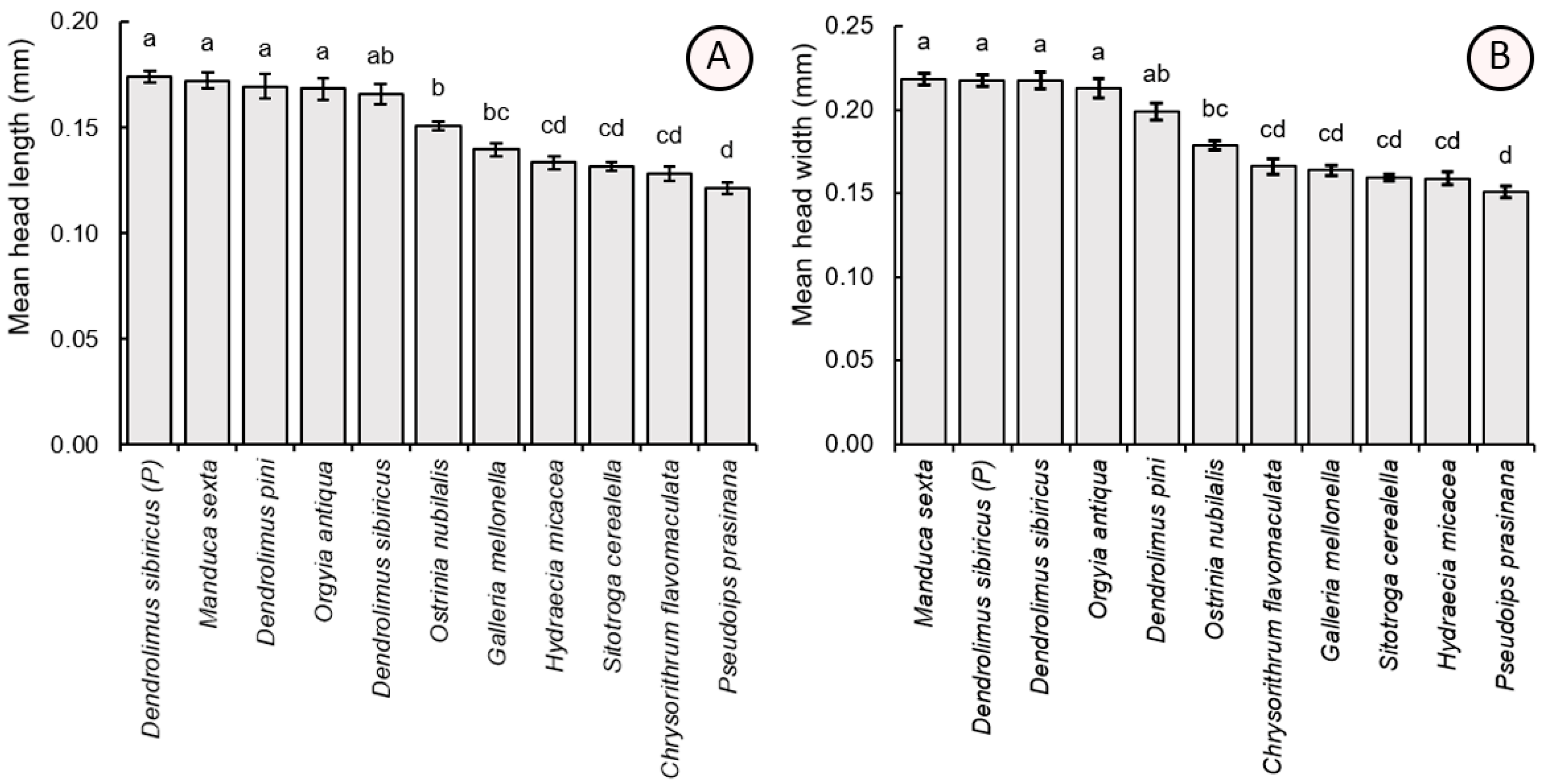 | Pyralidae | Galleria mellonella | 426 | 15–20 | 20 | Small |