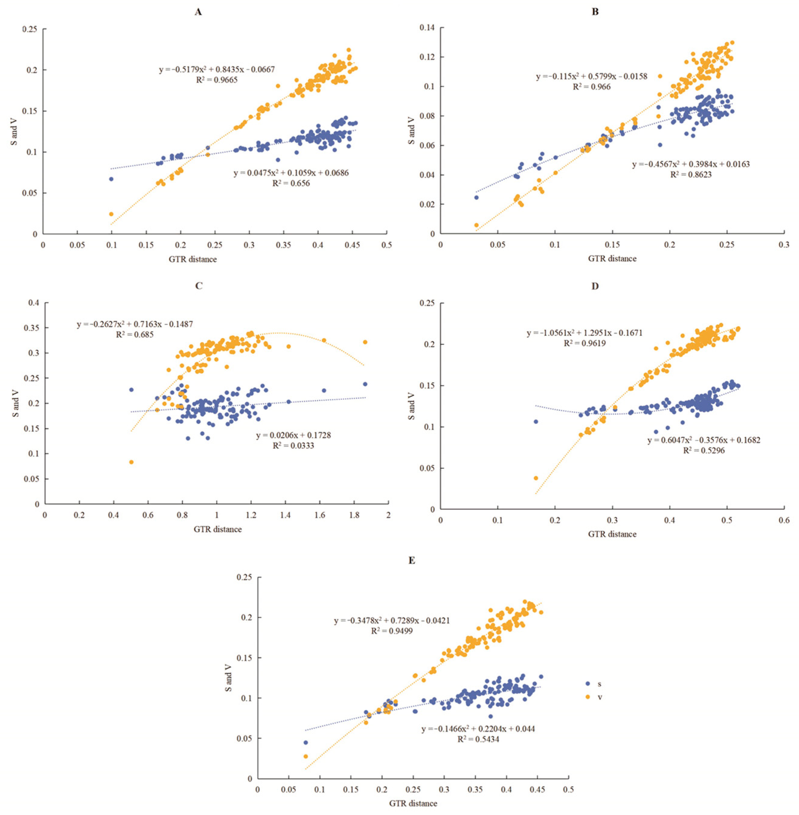 - Duchêne, D.A.; Mather, N.; Van der Wal, C.; Ho, S.Y.W. Excluding loci with substitution saturation improves inferences from phylogenomic data. Syst. Biol. 2022, 71, 676–689. [Google Scholar] [CrossRef] [PubMed]