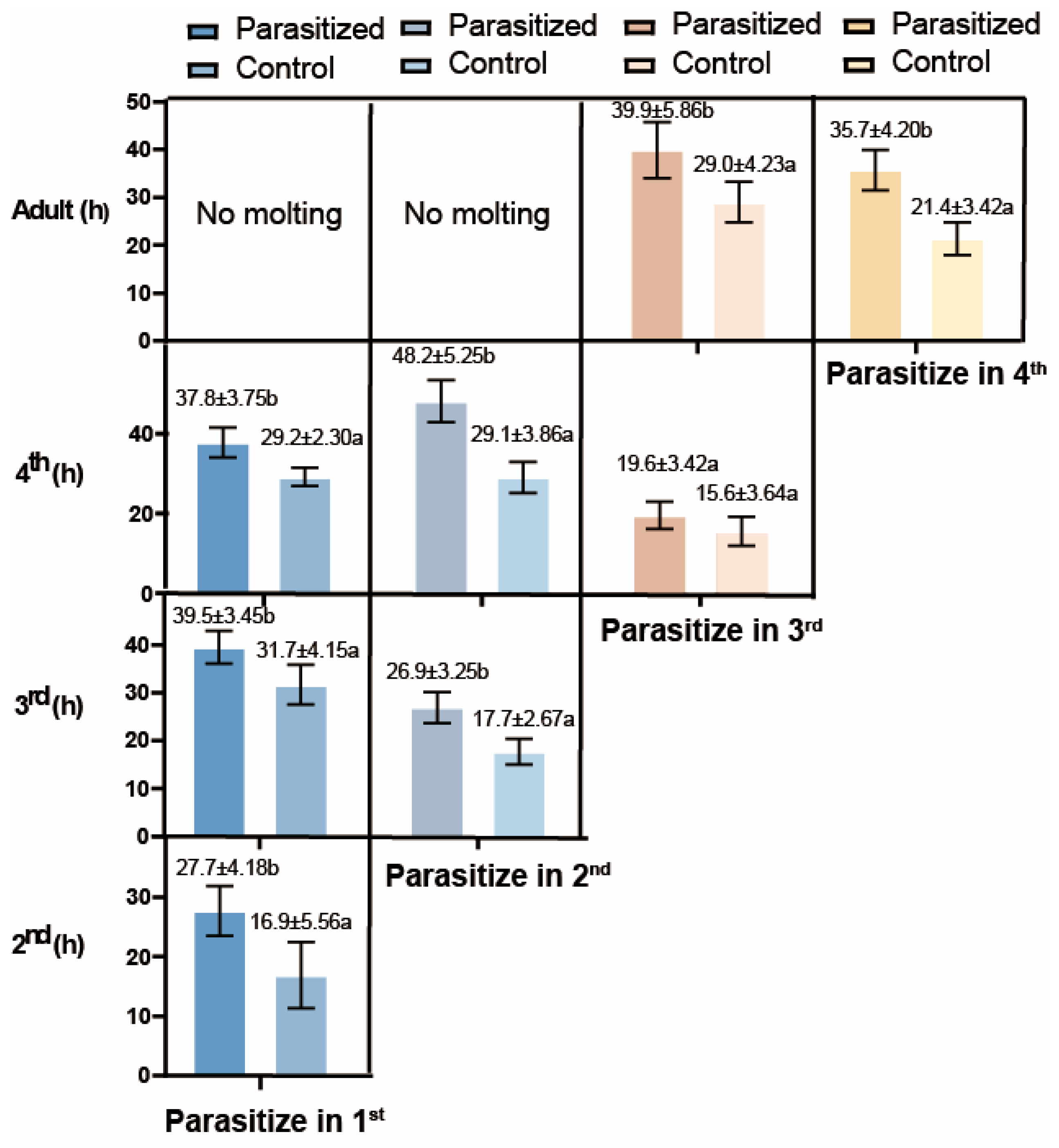 - Luo, S.P.; Xia, S.K.; Lu, Y.H.; Wu, K.M. Parasitism efficiency and progeny fitness of Peristenus spretus Chen et van Achterberg vary with nymphal instar of host, Apolygus lucorum (Meyer-Dur). Biol. Control 2022, 167, 104839. [Google Scholar] [CrossRef]