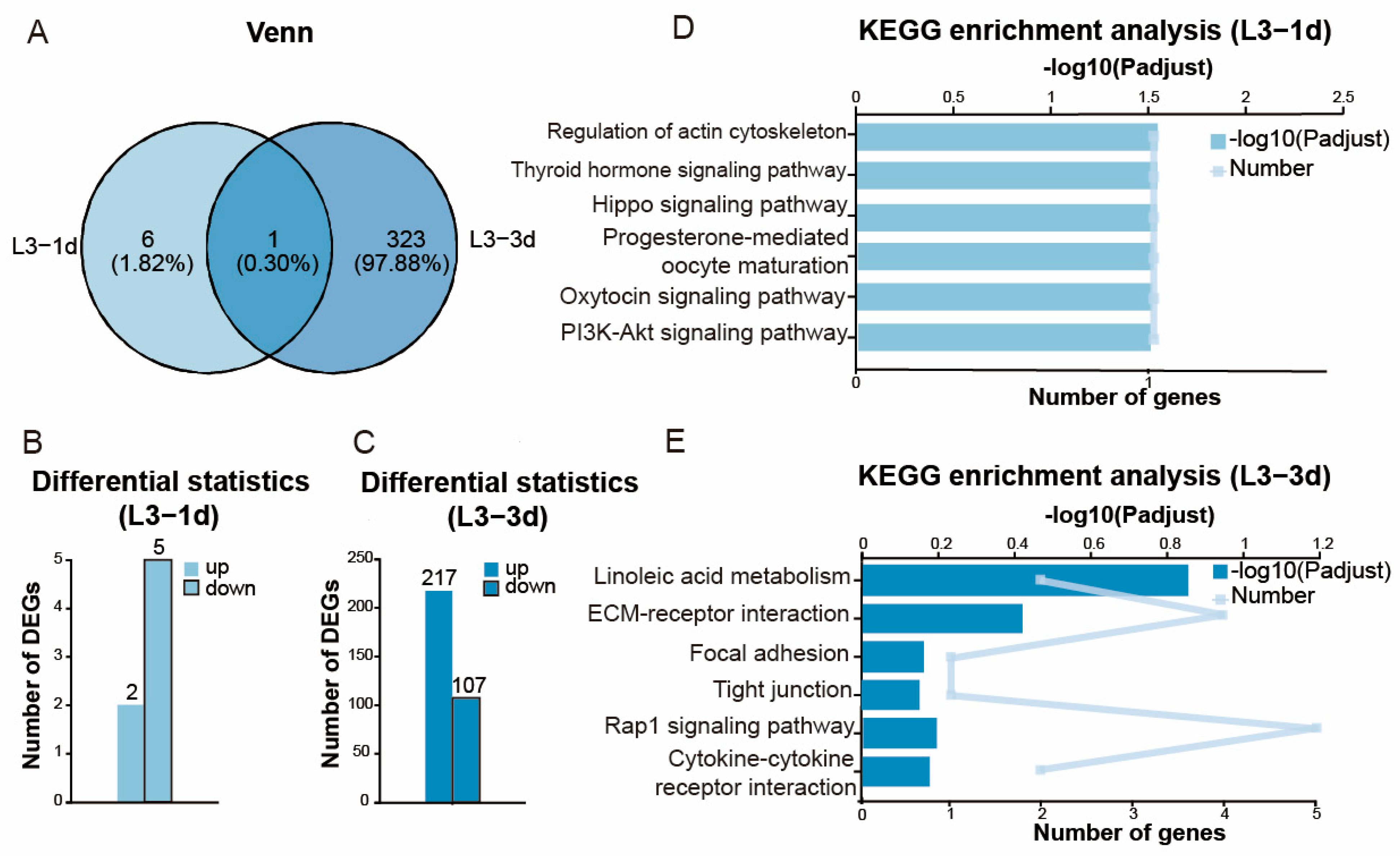 3.3. Transcriptome Sequencing and Differential Expression Analysis
