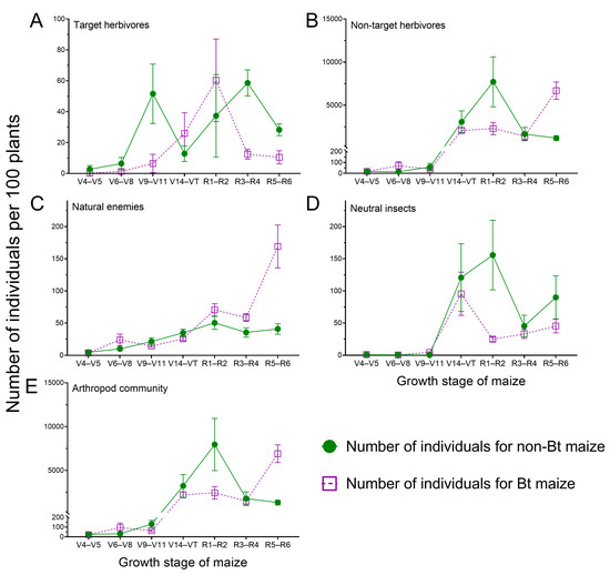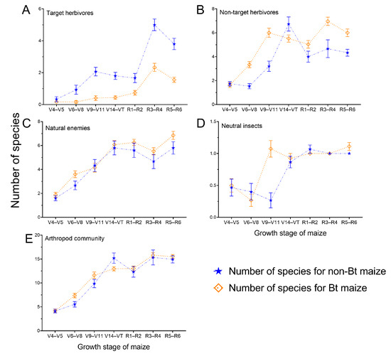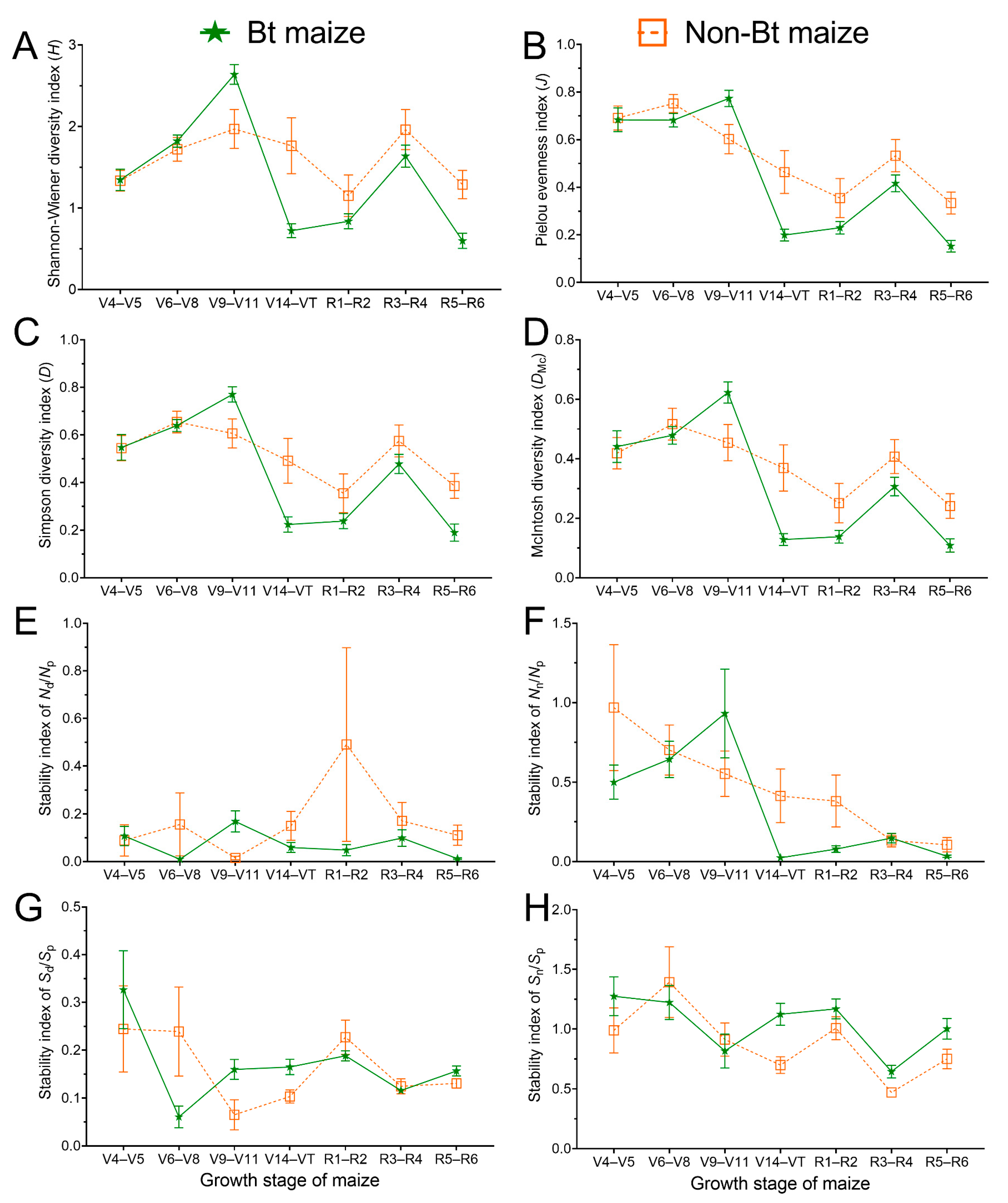 - Ren, Z.; Yang, M.; He, H.; Ma, Y.; Zhou, Y.; Liu, B.; Xue, K. Transgenic maize has insignificant effects on the diversity of arthropods: A 3-year study. Plants 2022, 11, 2254. [Google Scholar] [CrossRef] [PubMed]