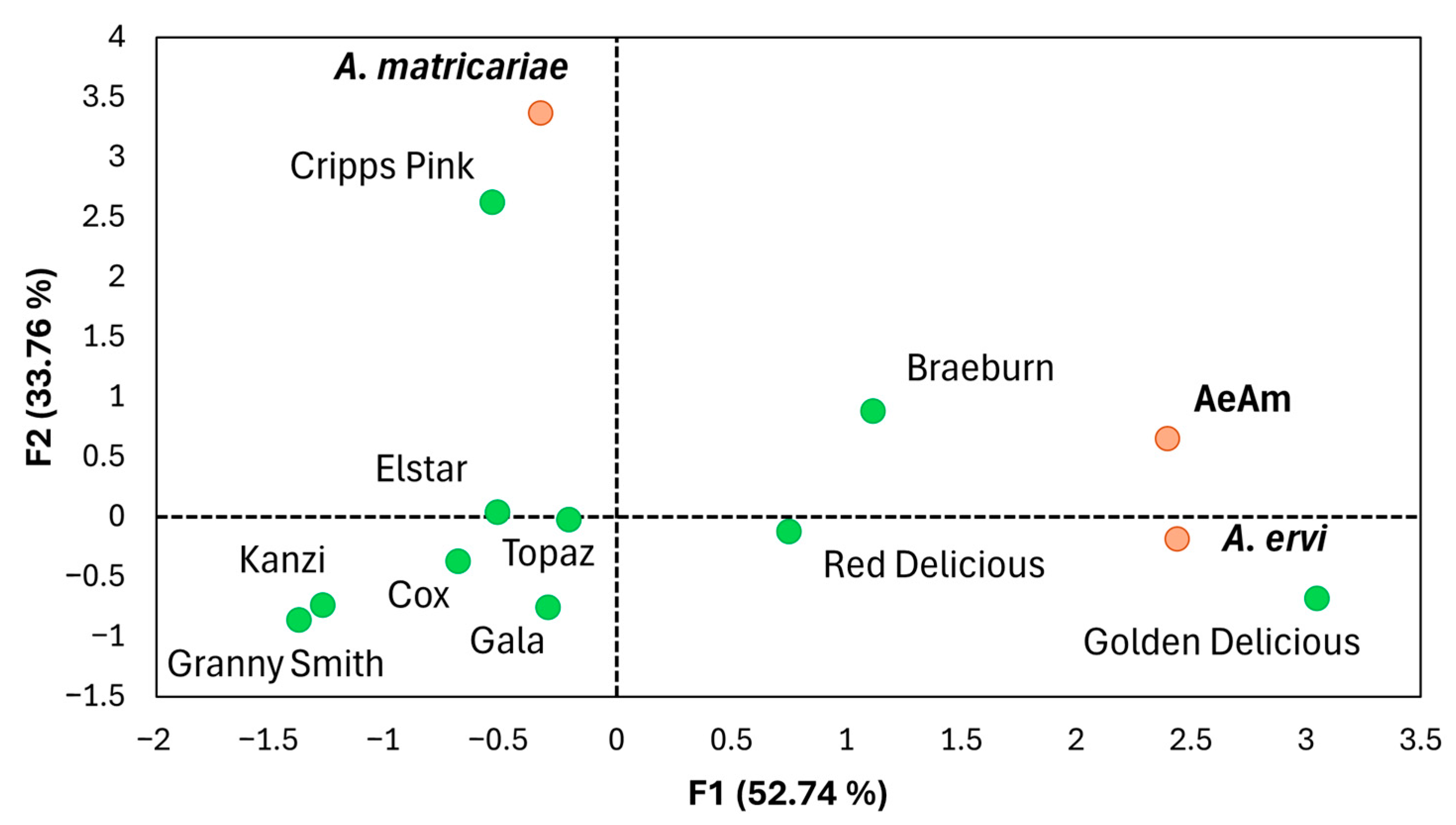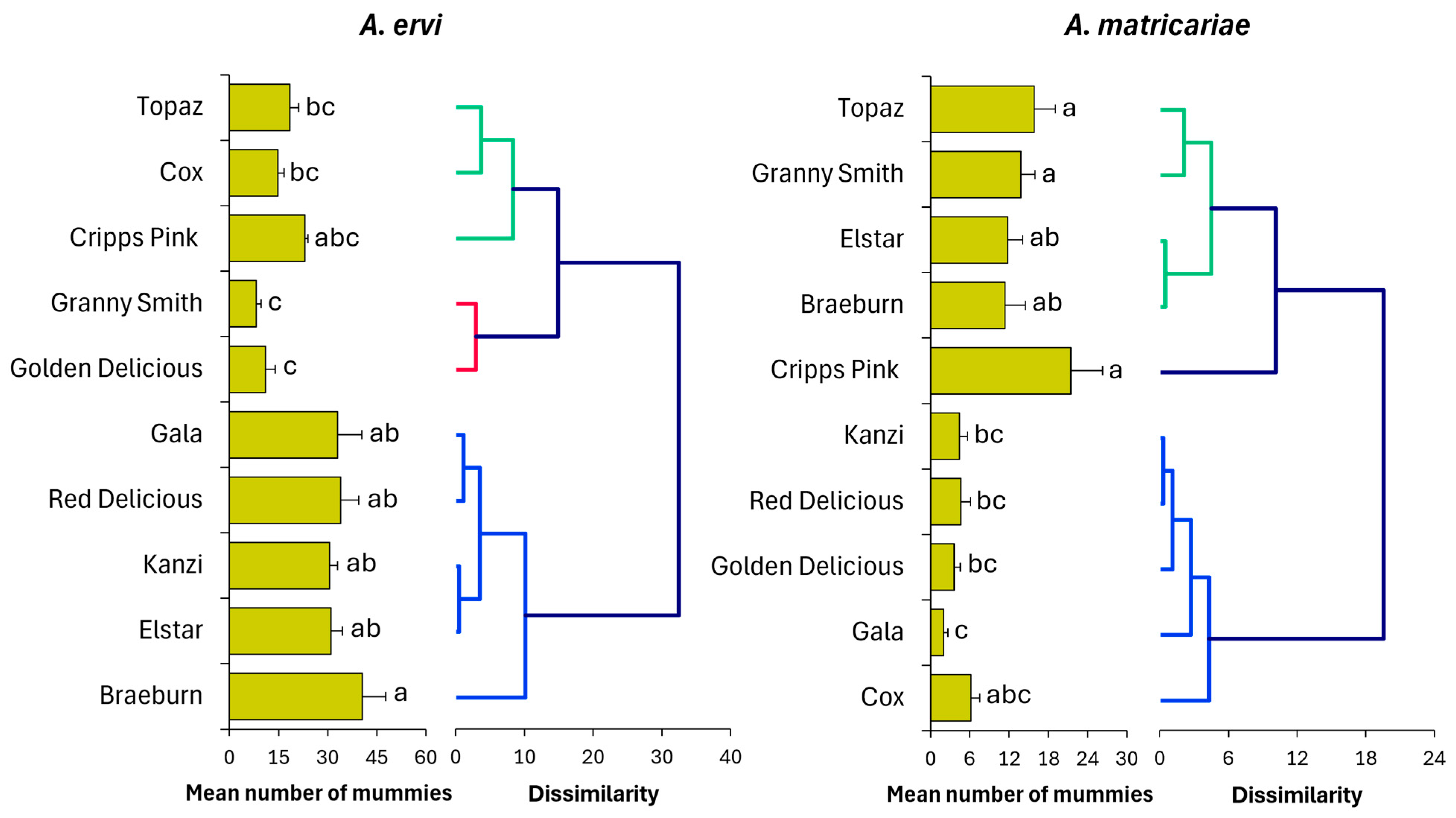 | Cultivars | A. ervi | A. matricariae |