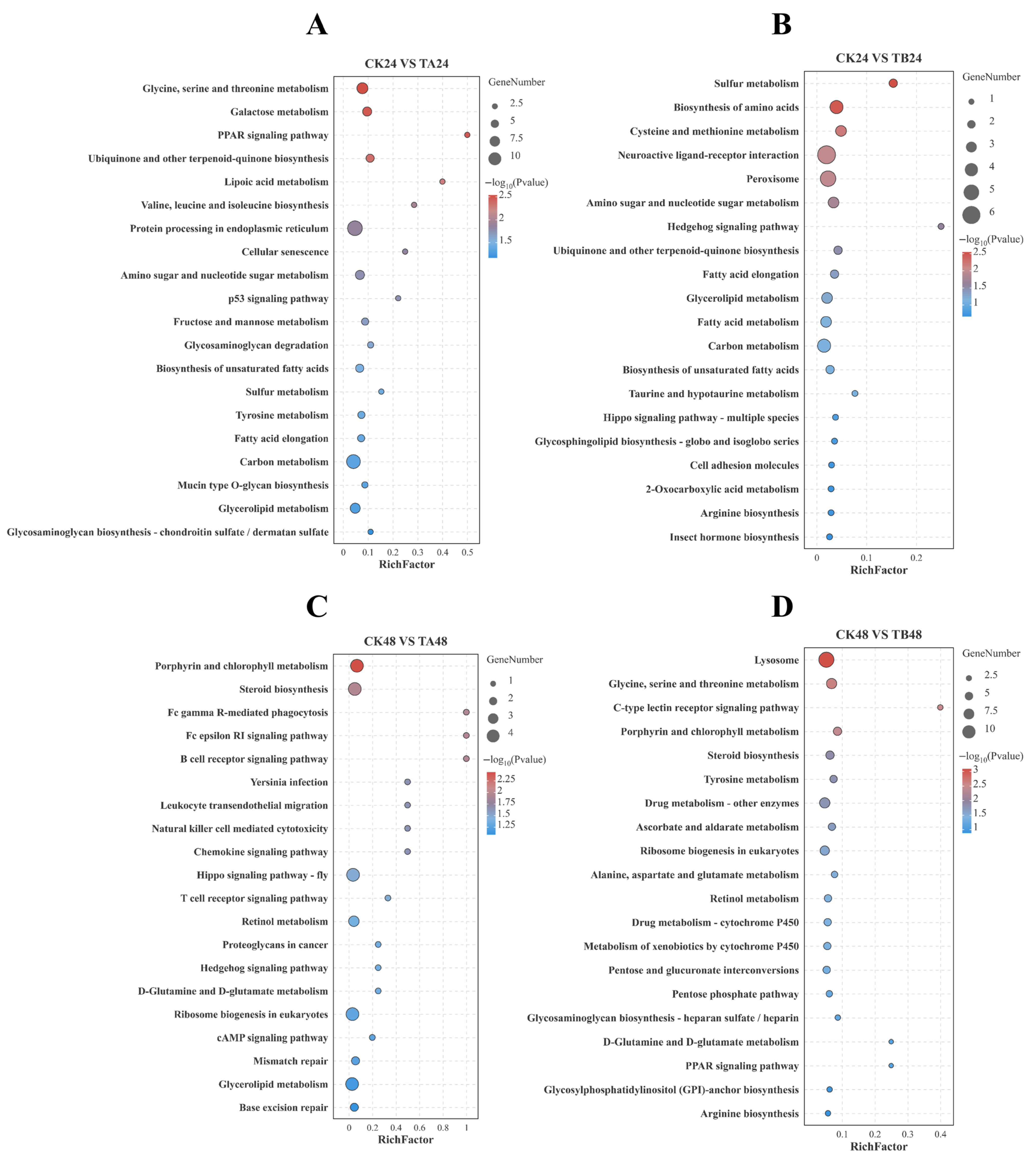 3.2. OTFP Treatment Induced Extensive Transcriptional Reprogramming in Fourth-Instar P. xylostella