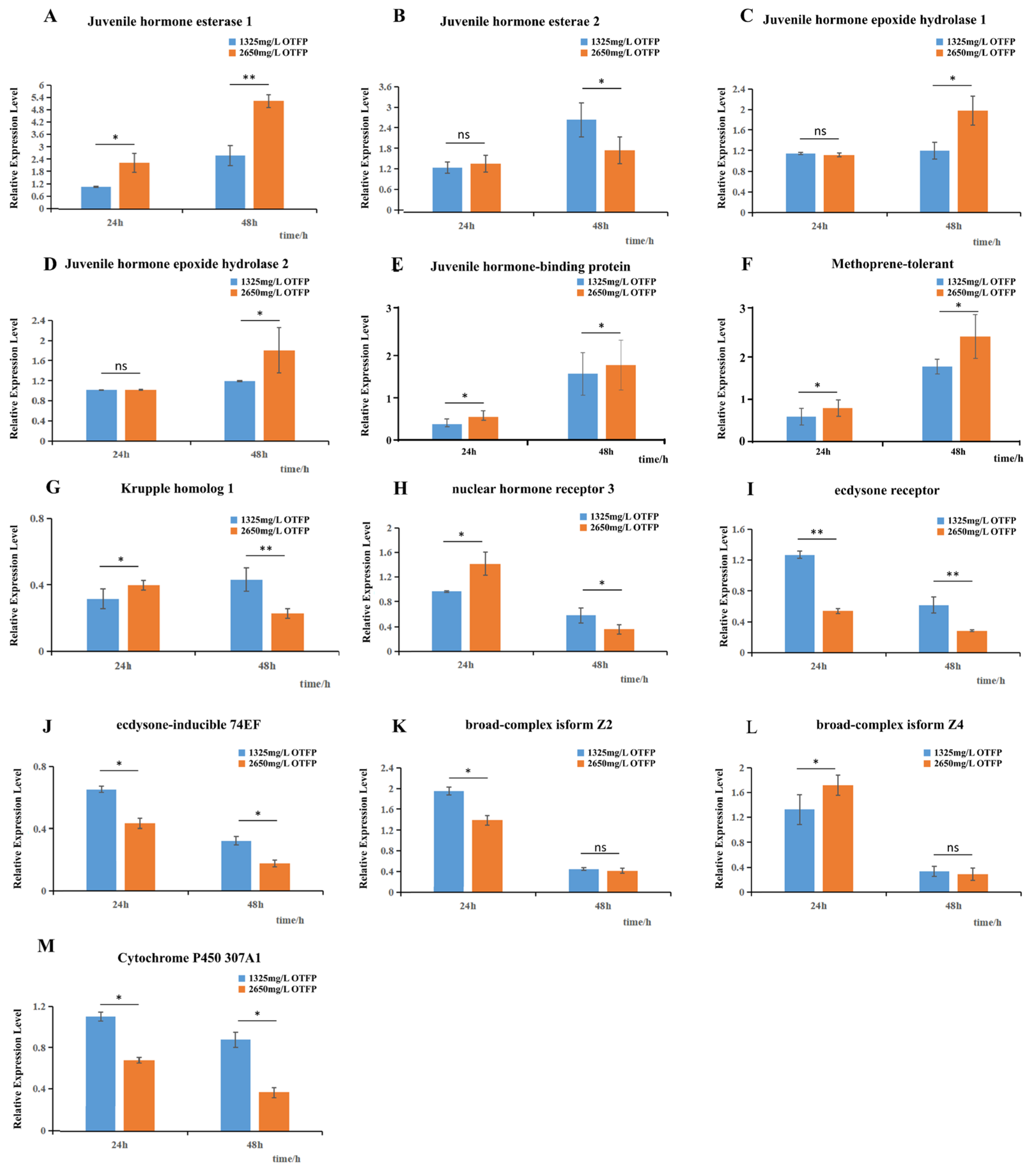 - Duan, D.; Zheng, R.; Lin, S.; Chen, Y.; Tian, H.; Zhao, J.; Tian, S.; Wei, H.; Gu, X. Modulation of Juvenile Hormone Esterase Gene Expression Against Development of Plutella xylostella (Lepidoptera: Plutellidae). J. Econ. Entomol. 2016, 109, 865–872. [Google Scholar] [CrossRef]