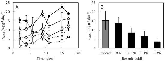 Christiansen, T.B.; Eriksen, N.T. Effects of Low Benzoic Acid Concentrations on Growth and Substrate Utilization in Black Soldier Fly Larvae. Insects 2025, 16, 1155. https://doi.org/10.3390/insects16111155