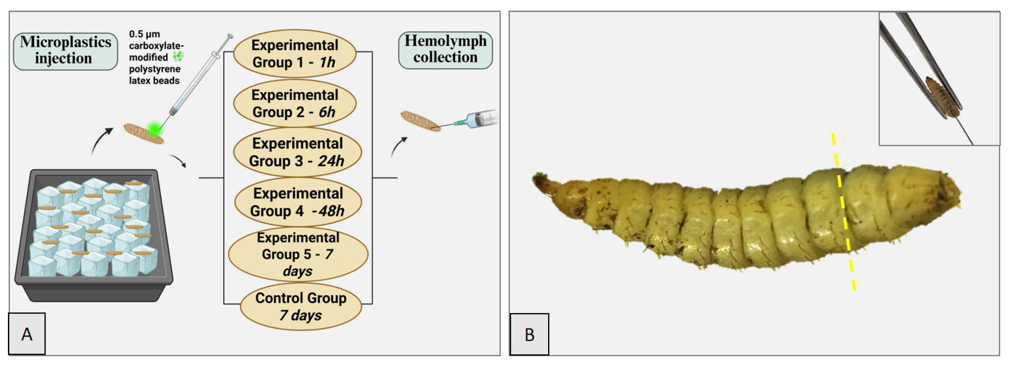 Ionica C-N, Pop R, Hodor D, Constantin I, Hiruta A, Hota A-T, Tabaran AF, Daina S, Szakacs A-R, Macri A. Cellular Uptake and Tissue Retention of Microplastics in Black Soldier Fly Larvae. Insects. 2025; 16(11):1169. https://doi.org/10.3390/insects16111169