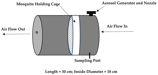 - Morgan, N.O.; Retzer, H.J. Aerosol wind tunnel for vector insecticide evaluation. J. Econ. Entomol. 1981, 74, 389–392. [Google Scholar] [CrossRef]