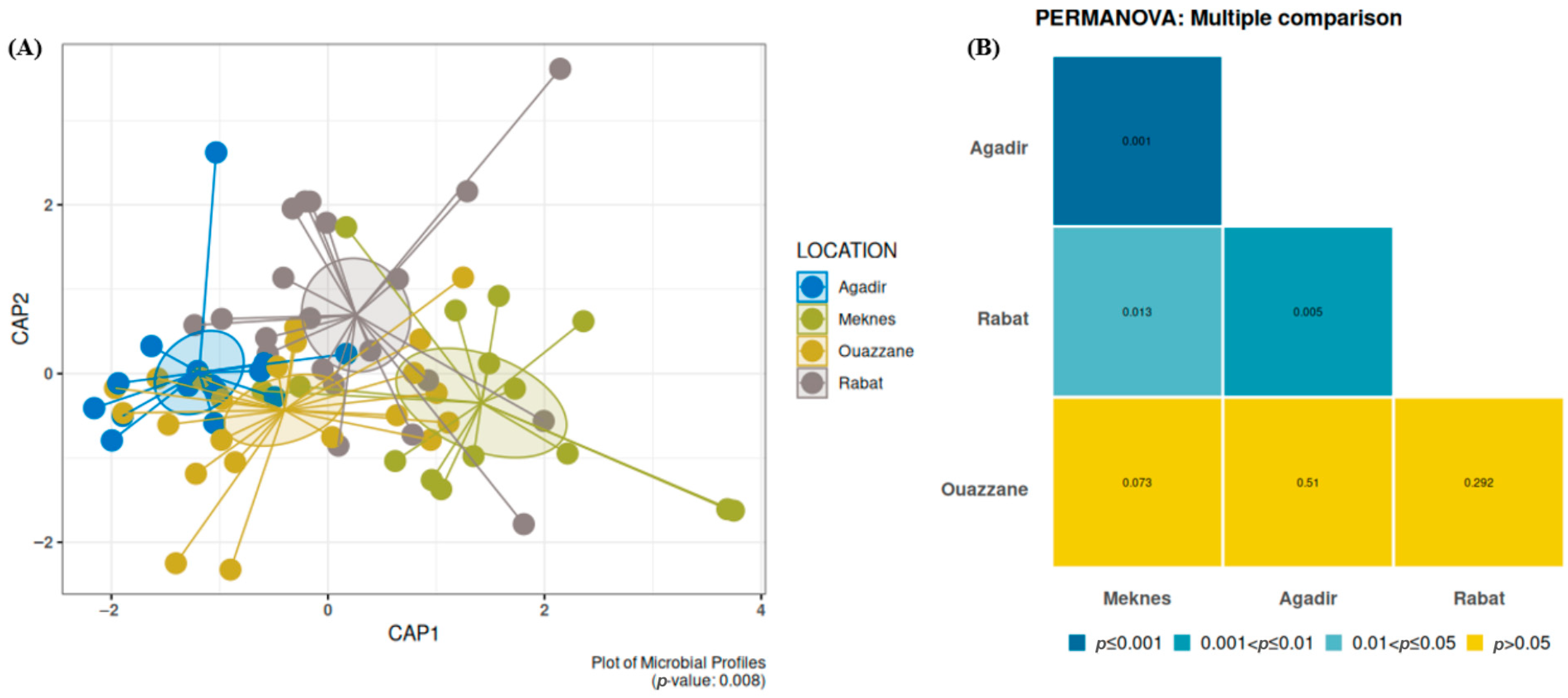 Chicago/Turabian StyleRemmal, Imane, Youssef El Yamlahi, Naima Bel Mokhtar, Ioannis Galiatsatos, Dimitrios Loukovitis, Eva Dionyssopoulou, Mohammed Reda Britel, Panagiota Stathopoulou, Amal Maurady, and George Tsiamis. 2025. "Analysis of the Bacterial Microbiota in Wild Populations of Prickly Pear Cochineal, Dactylopius opuntiae in Morocco" Insects 16, no. 12: 1184. https://doi.org/10.3390/insects16121184