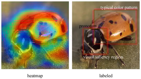 To further clarify the ecological meaning of the explainability module, as illustrated in Figure 5, the model-generated saliency heatmap consistently highlights two key morphological structures: the pronotum region and the characteristic elytral color pattern.