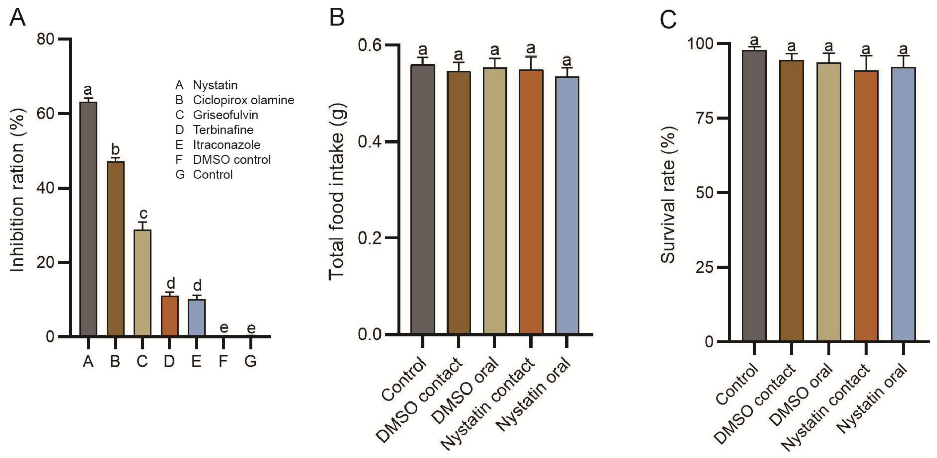 2.5. Effect of Nystatin on Firefly Survival Under the Introduction of T. koningiopsis ZL01
