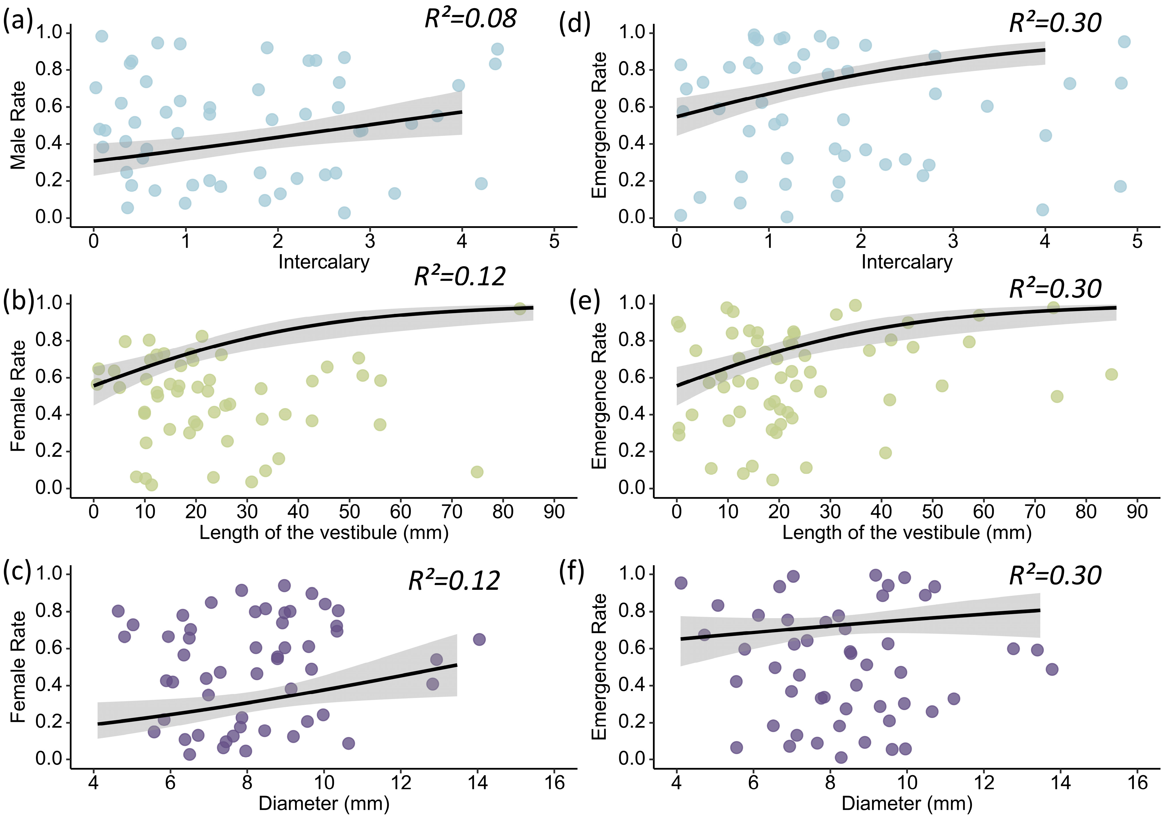 Xie, X.-L.; Lu, H.-X.; Orr, M.; Du, T.-T.; Chen, J.-T.; Shi, X.-Y.; Cheng, R.; Zhou, Q.-S.; Luo, A.; Zhu, C.-D.; et al. Nest Architecture Drives Sex-Specific Emergence Success in a Predator Wasp (Hymenoptera, Vespidae, Discoelius wangi). Insects 2025, 16, 1197. https://doi.org/10.3390/insects16121197