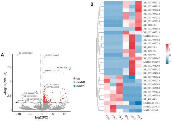 Differential expression analysis of lncRNAs between FB and SB samples was performed using the DESeq2 (version 1.20.0) package [39]. Differentially expressed lncRNAs (DElncRNAs) were identified based on the criteria of |log2FC| > 1.5 and p < 0.05. Expression clustering of the identified DElncRNAs was subsequently performed using the Omicsmart online platform (https://www.omicsmart.com/, accessed on 1 October 2025) with default parameters. Additional information on the software is available from the Bioconductor database (https://www.bioconductor.org/packages/release/bioc/, accessed on accessed on 1 October 2025).