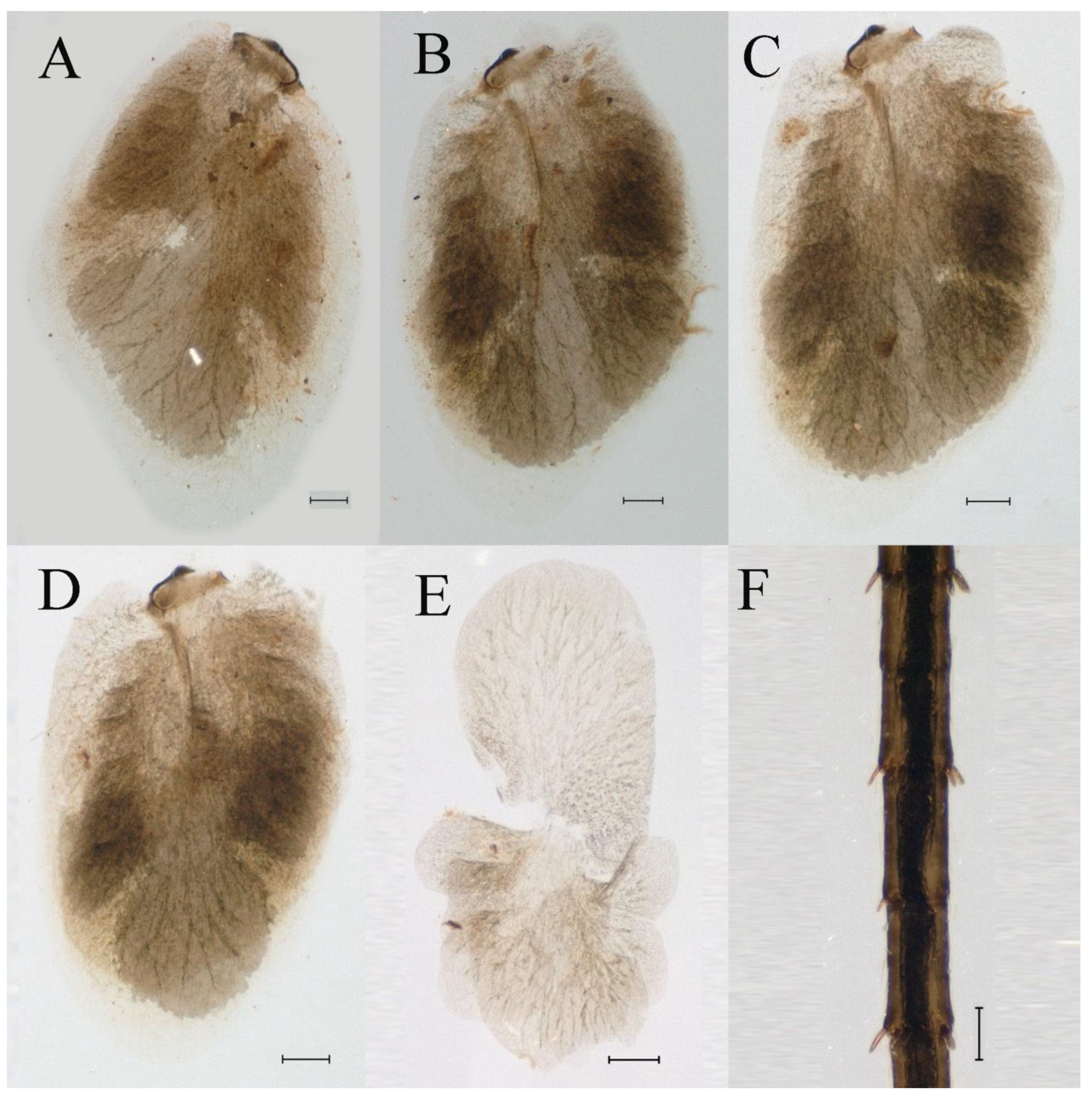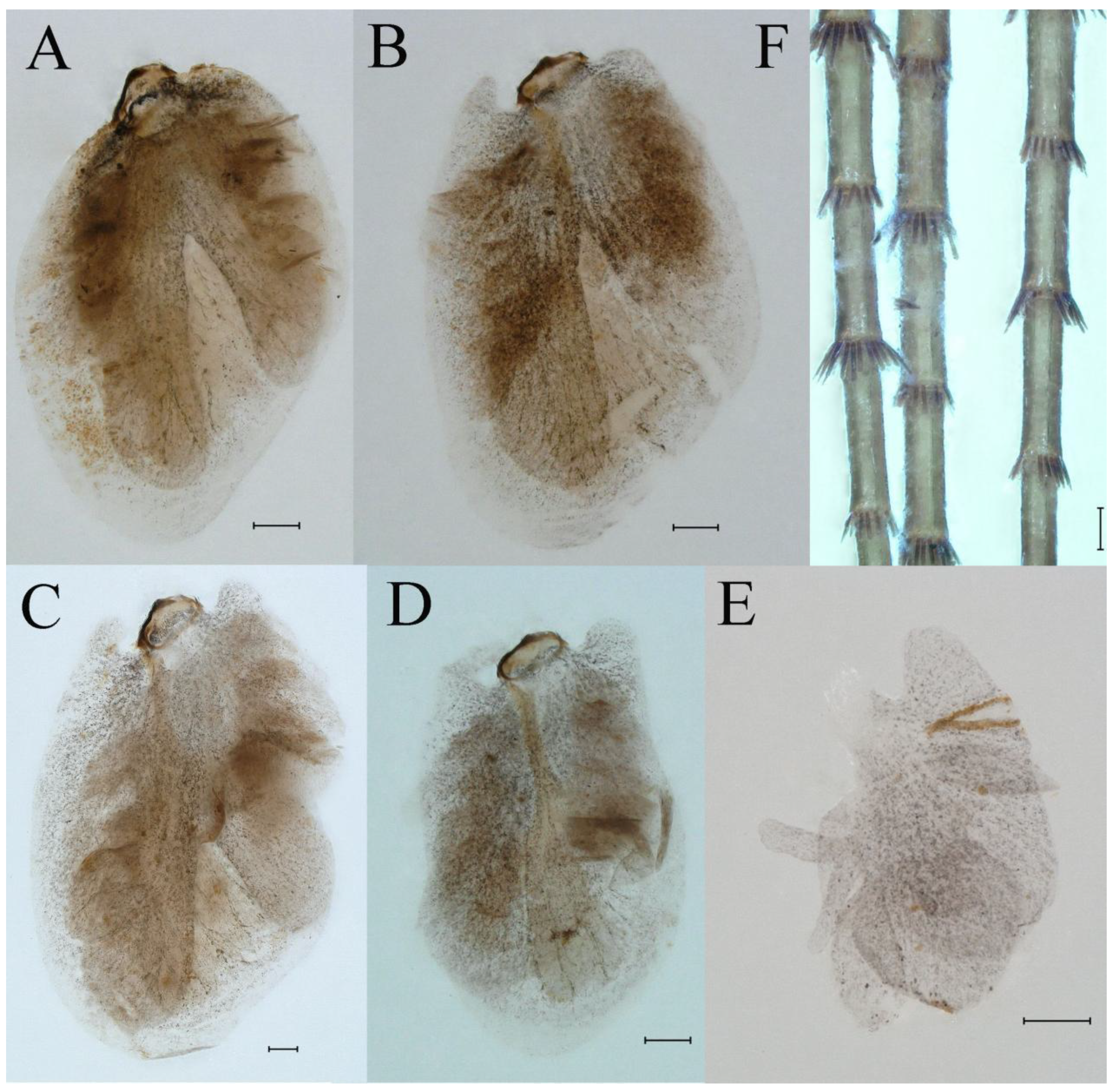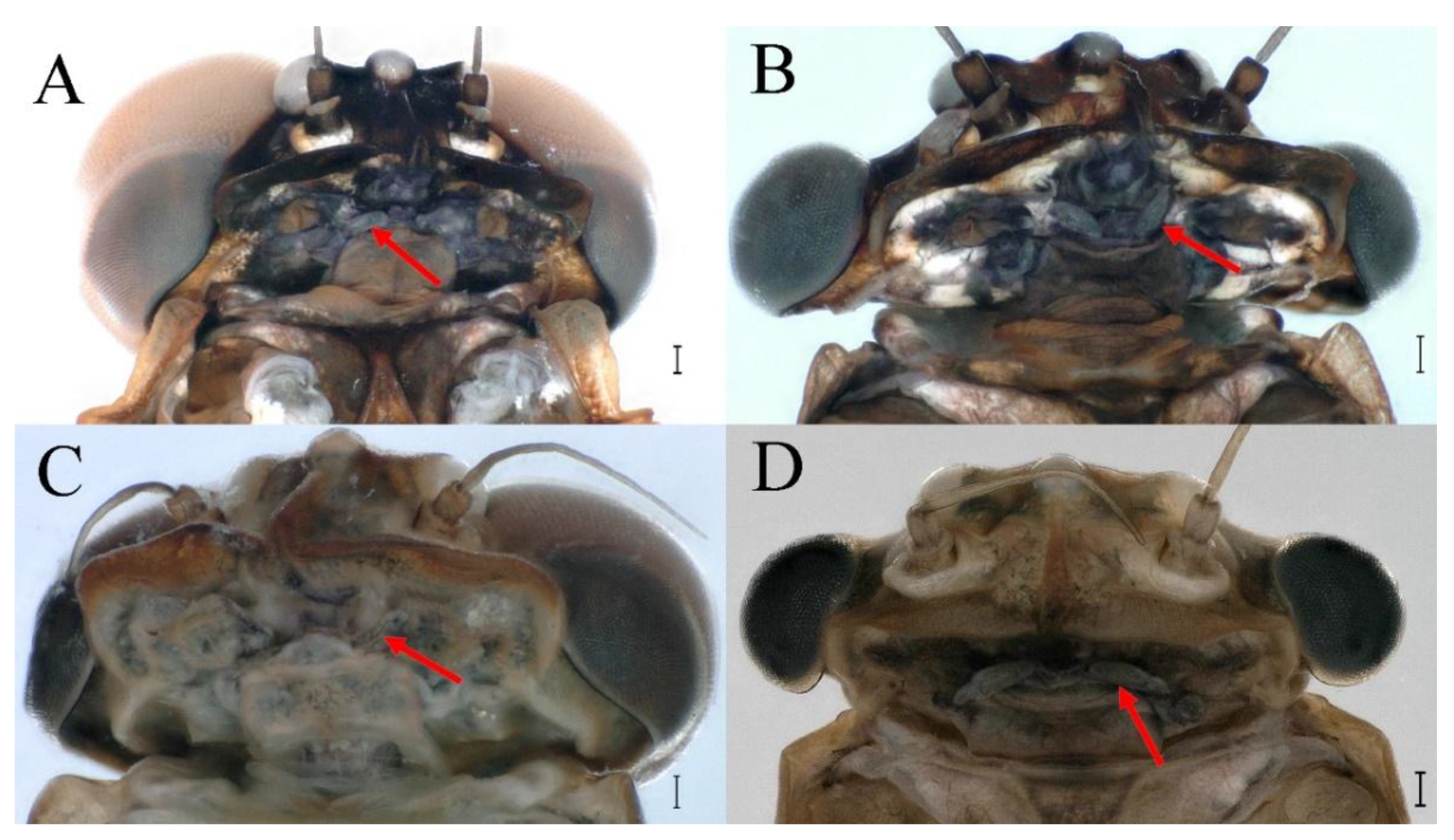 - Zhang, W.; Han, N.; Zhang, M.; Wang, Y.F.; Zhou, C.F. The imaginal and detailed nymphal characters of Cincticostella fusca (Kang & Yang, 1995) (Ephemeroptera: Ephemerellidae). Zootaxa 2020, 4729, 277–285. [Google Scholar] [CrossRef]