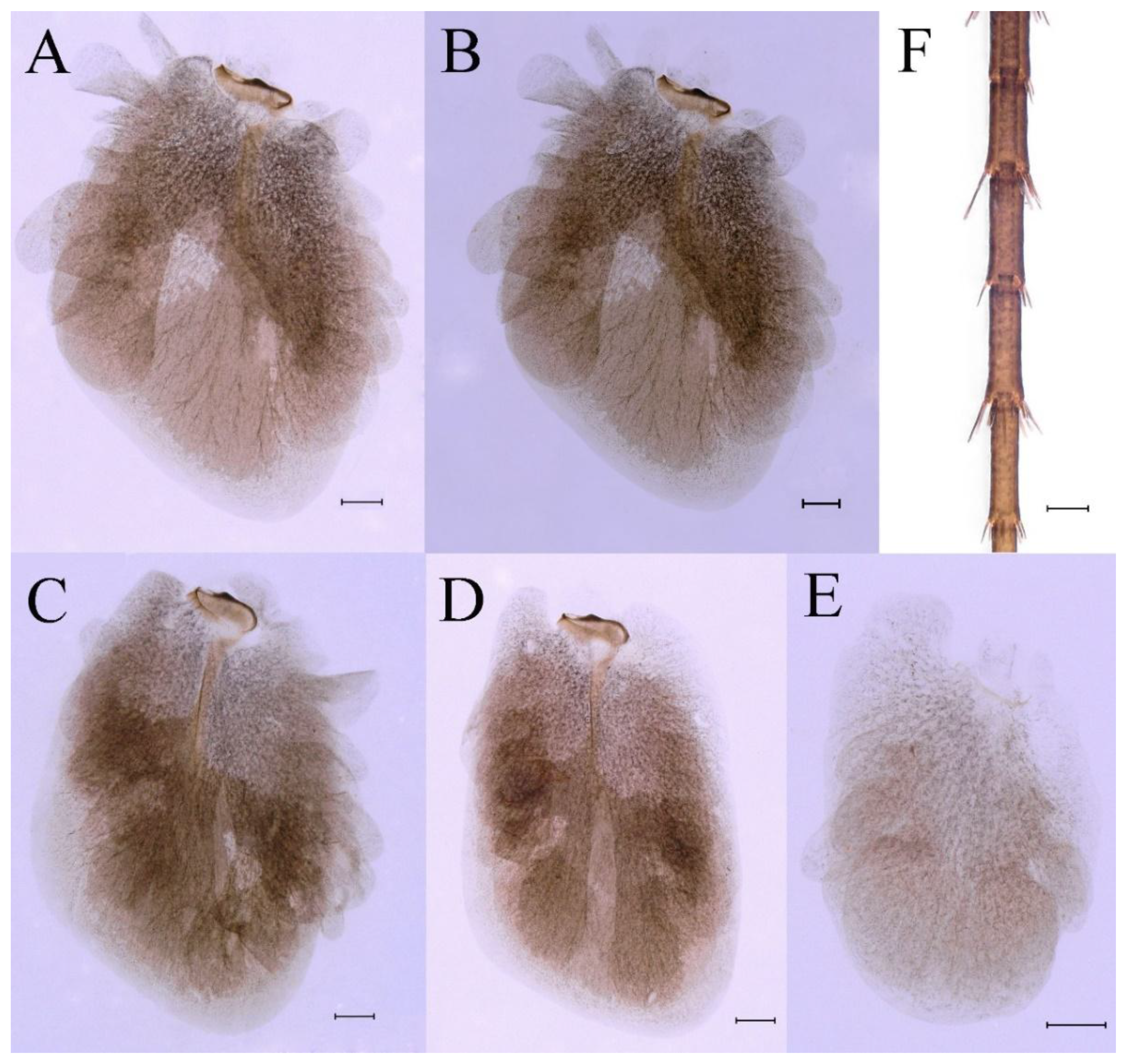 - 2. Each posteromedian projection relatively weakly developed (e.g., Figure 5A)…....….....3