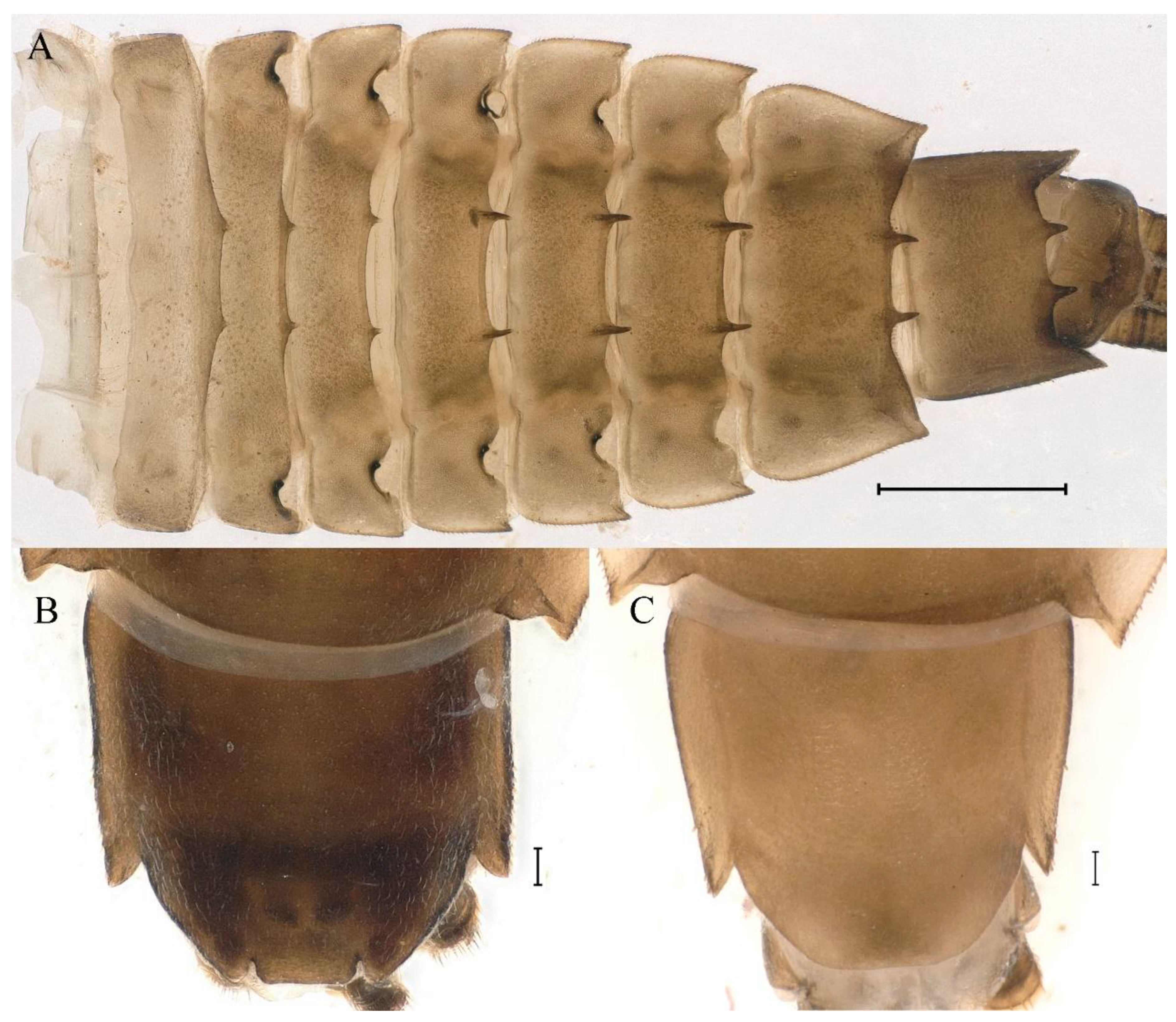 - 2′. At least some abdominal terga with relatively well-developed posteromedian projections (e.g., Figure 22A).…………………………….…………….…………......…......................5