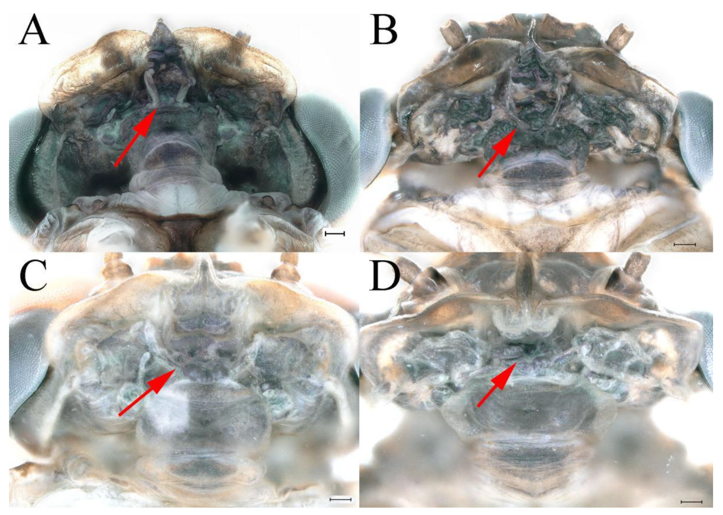 - Xiang, C.-Y.; Gao, F.-L.; Jakovlic, I.; Lei, H.-P.; Hu, Y.; Zhang, H.; Zou, H.; Wang, G.-T.; Zhang, D. Using PhyloSuite for molecular phylogeny and tree-based analyses. Imeta 2023, 2, e87. [Google Scholar] [CrossRef]