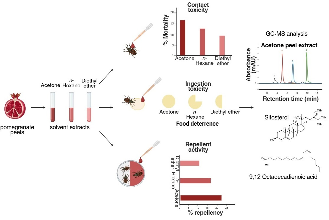 Lo Muzio F, Pistillo OM, D’Isita I, Iadarola G, Di Palma A, De Cristofaro A, Rotundo G, Germinara GS. Insecticidal and Repellent Activity of Different Pomegranate Peel Extracts Against Granary Weevil Adults. Insects. 2025; 16(12):1222. https://doi.org/10.3390/insects16121222