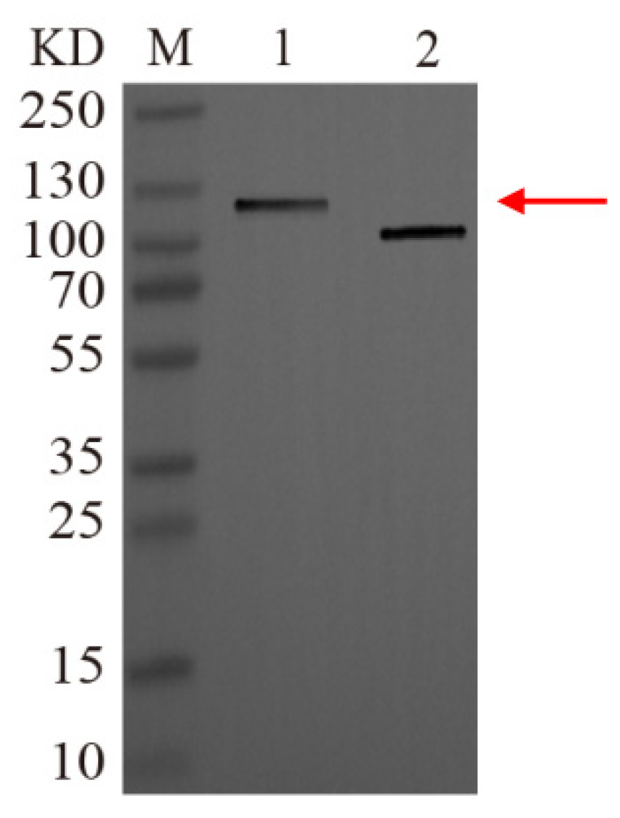 3.6. Recombinant Protein Isolation and Western Blot Confirmation