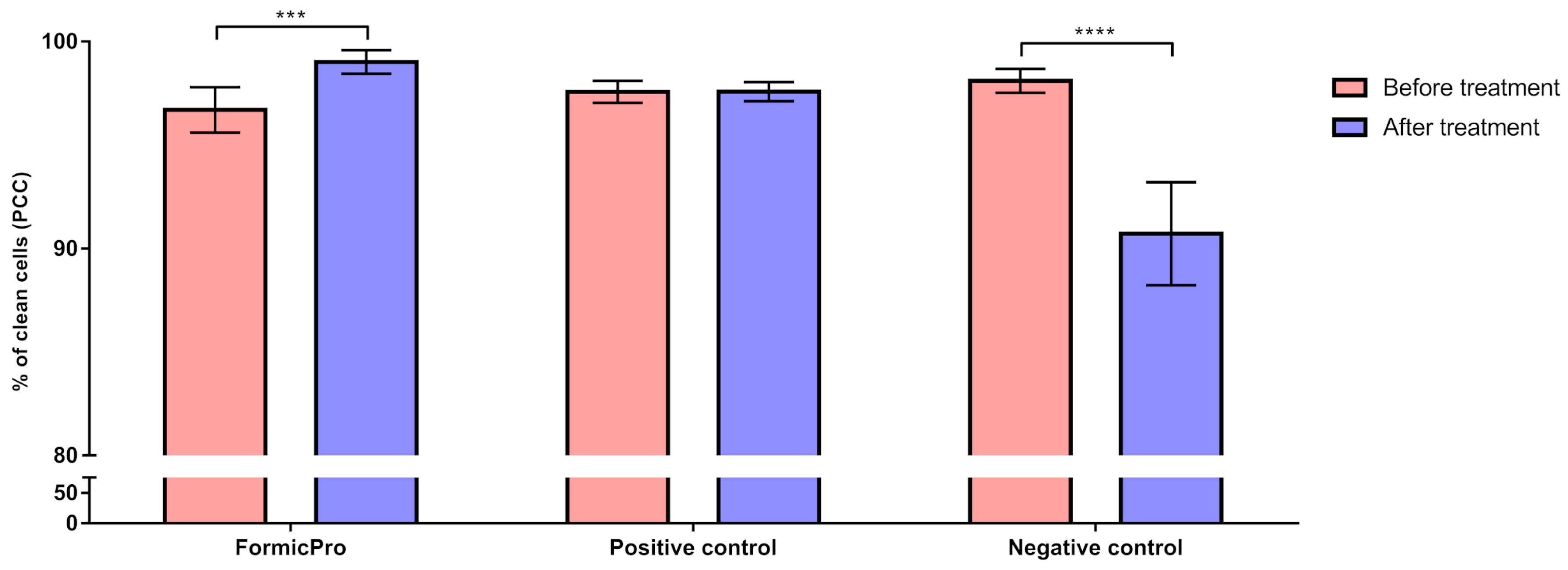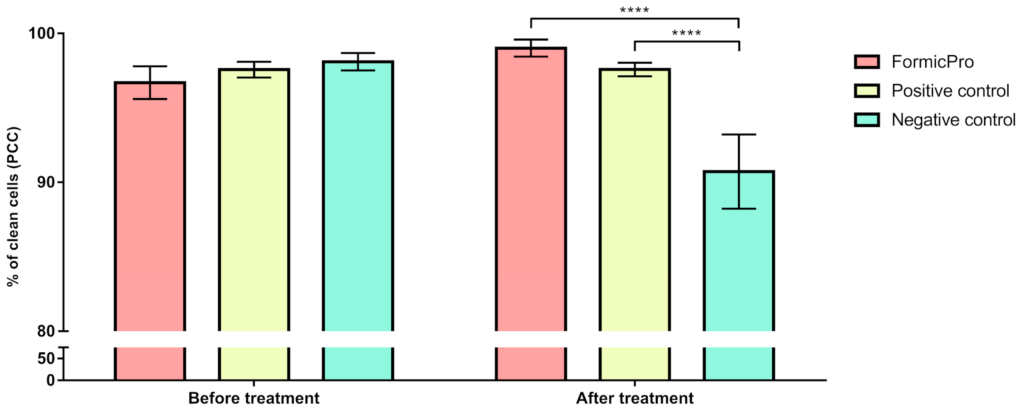 | Formic Pro | Before treatment | 30 | 96.69 | 1.10 | 95.32 | 98.70 |