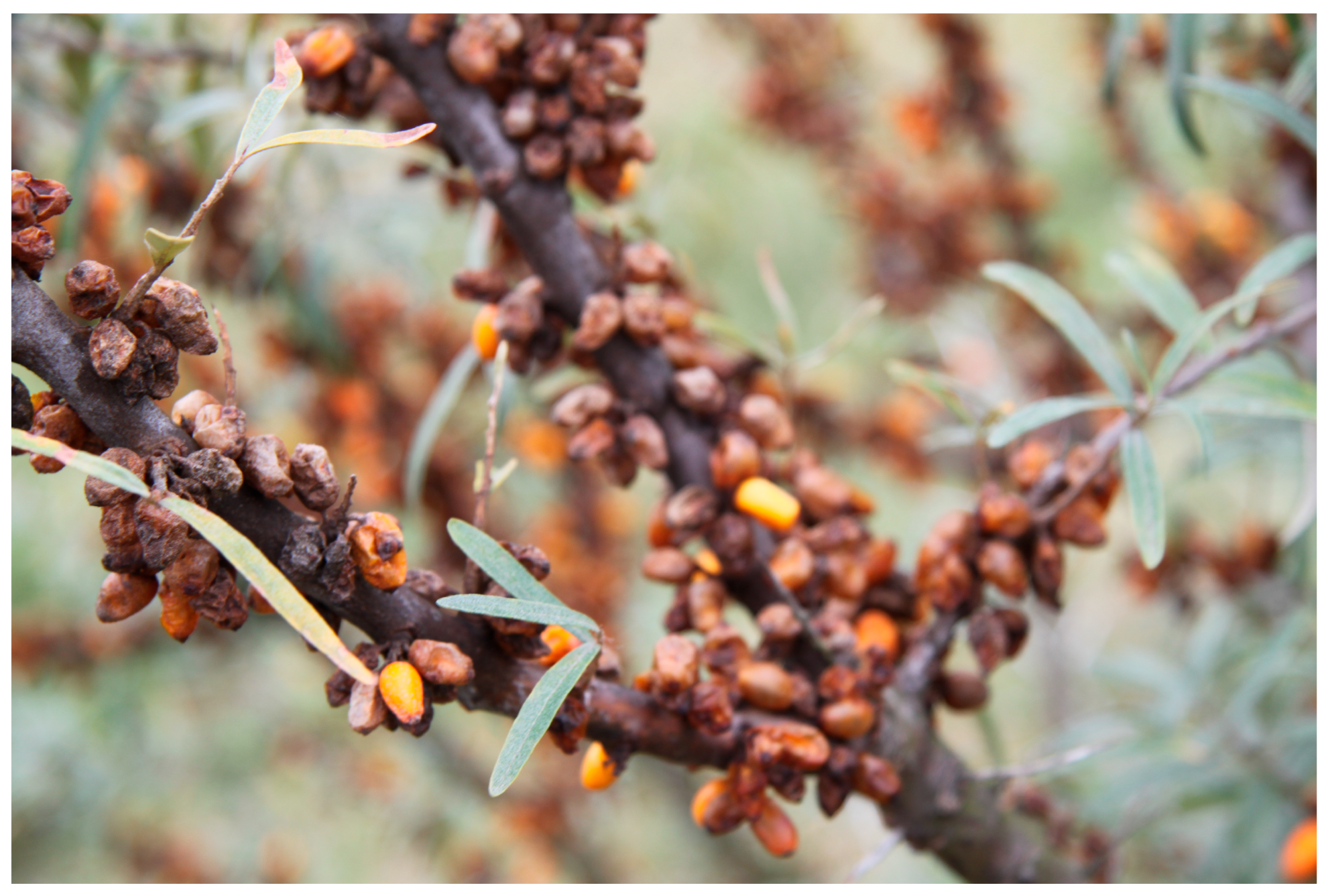 - Suryakumar, G.; Gupta, A. Medicinal and therapeutic potential of Sea buckthorn (Hippophae rhamnoides L.). J. Ethnopharmacol. 2011, 138, 268–278. [Google Scholar] [CrossRef] [PubMed]