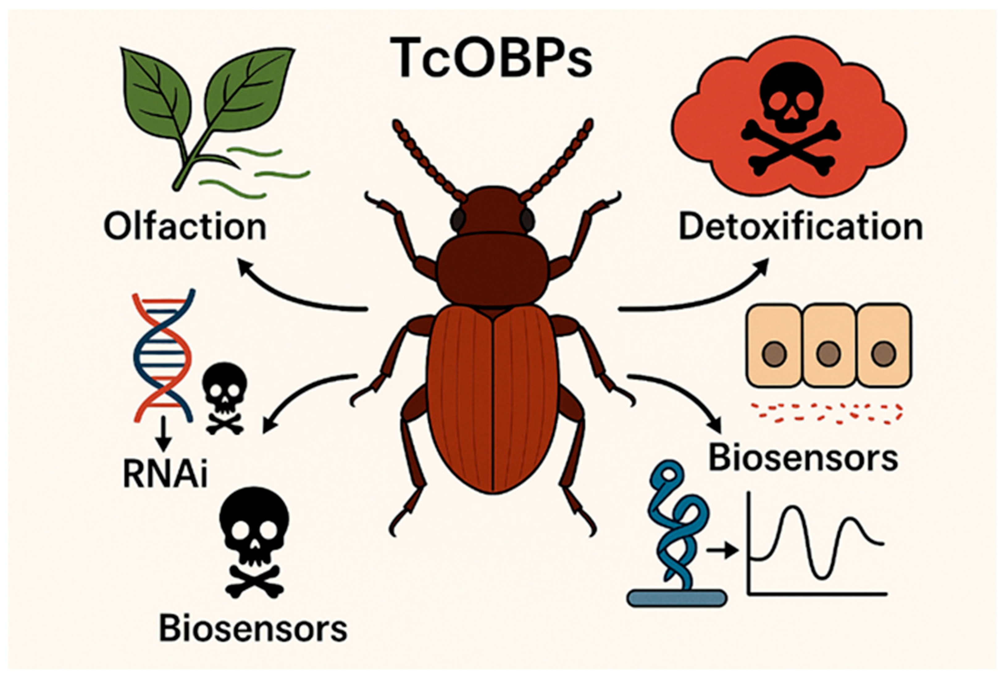 Chicago/Turabian StyleWang, Lei, Yujie Lu, and Zongpei Zhao. 2025. "Odorant Binding Proteins in Tribolium castaneum: Functional Diversity and Emerging Applications" Insects 16, no. 12: 1250. https://doi.org/10.3390/insects16121250