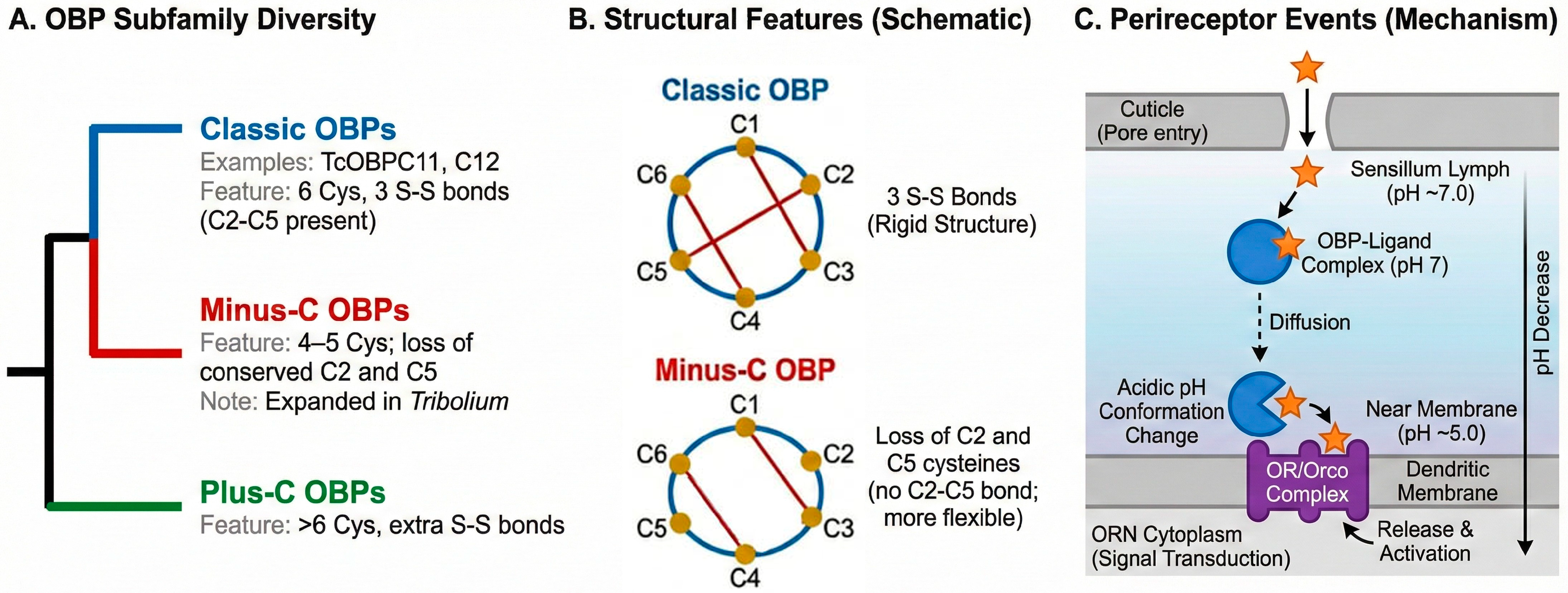 2. Molecular Architecture and Functional Dynamics of T. castaneum OBPs