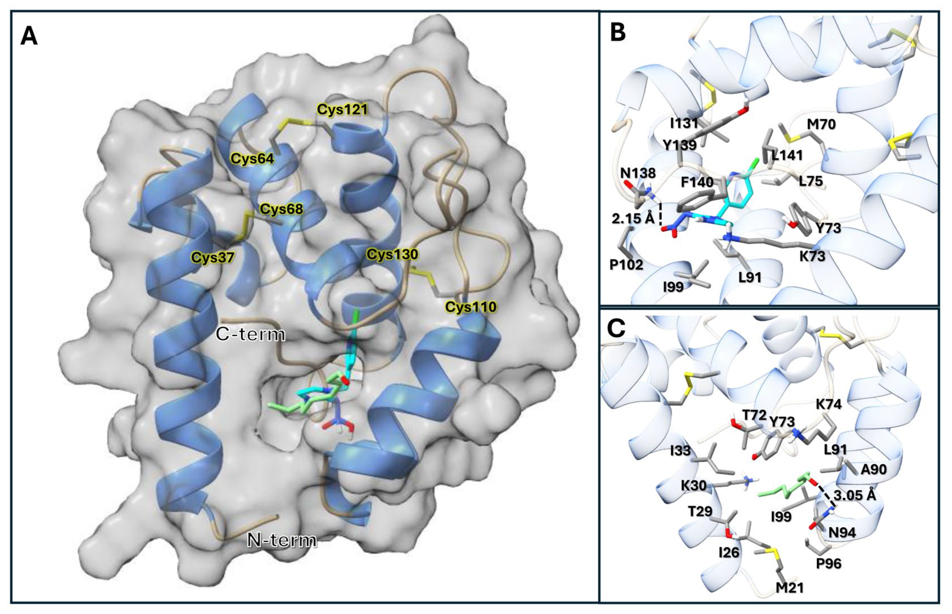 2.7. LdecOBP33 Protein Model and Ligand Docking