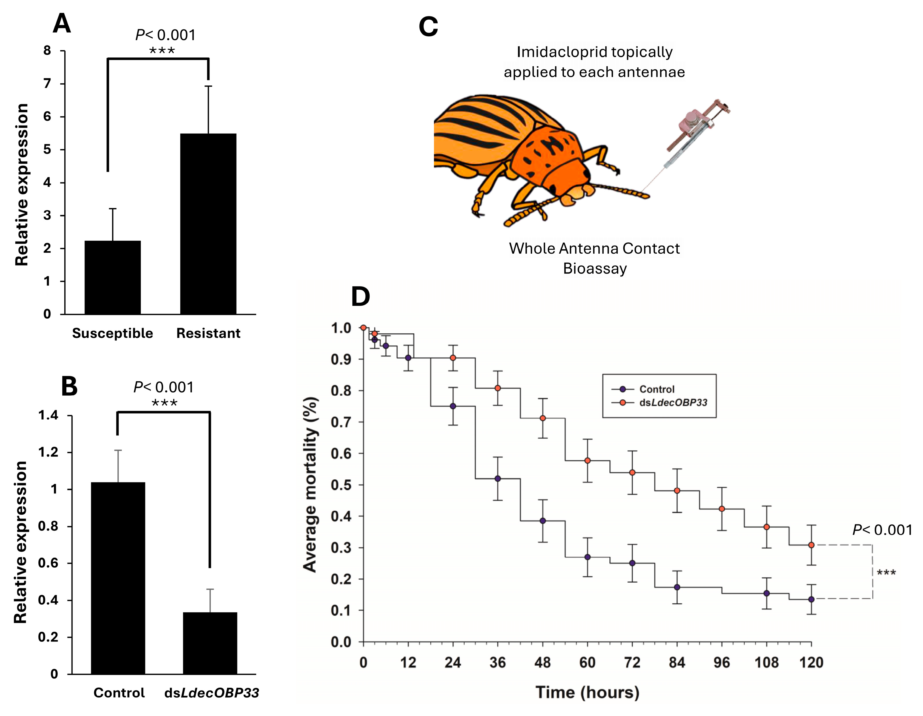 3.4. Contribution of LdecOBP33 to Imidacloprid Resistance in CPB