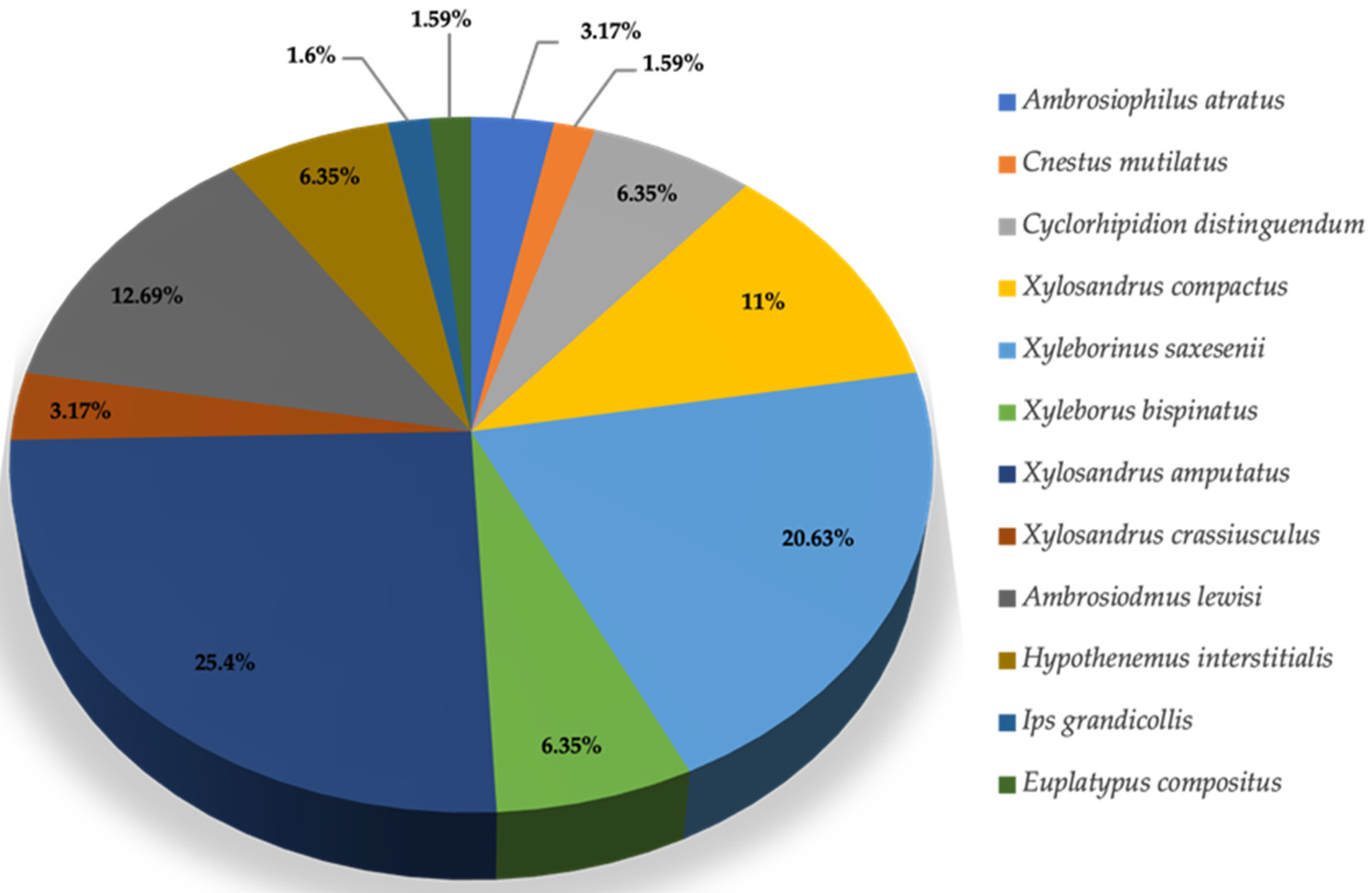Xyleborinus saxesenii (Ratzeburg 1837)Fruit-tree pinhole borer20.63%Dominance