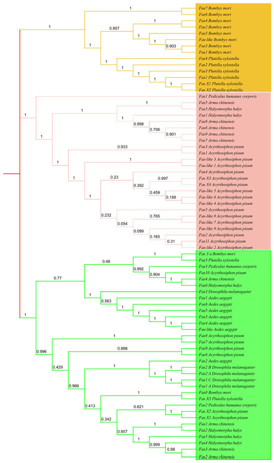 3.2. Phylogenetic Analysis of Insect FAS Genes