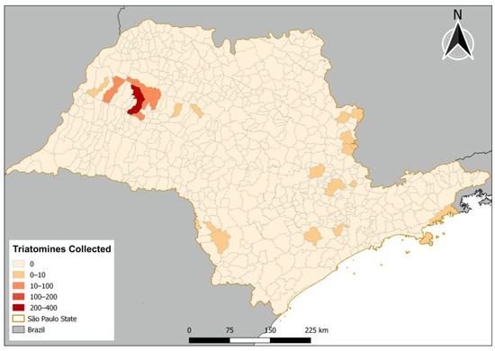 Distribution of triatomines collected in the state of São Paulo.