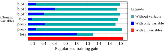 Results of jackknife analyses on climatic variables in the MaxEnt model.