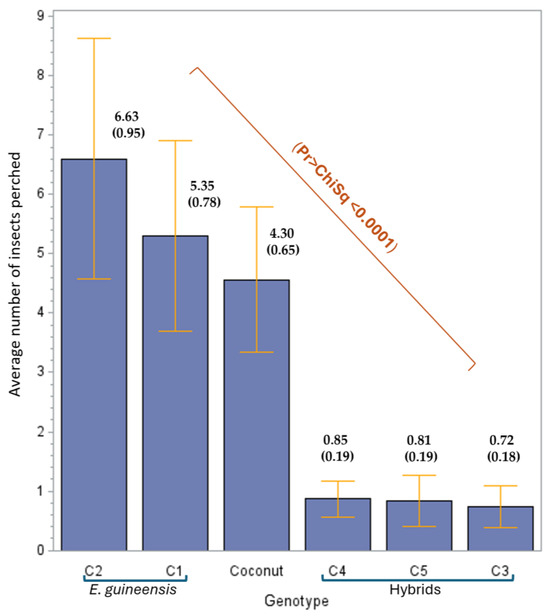 3.1. Antixenosis to Haplaxius crudus in Oil Palm Genotypes