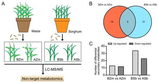 Table 1. The fold change and VIP value of differential secondary metabolites in maize and sorghum groups.