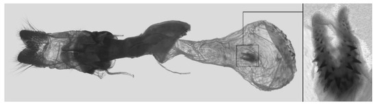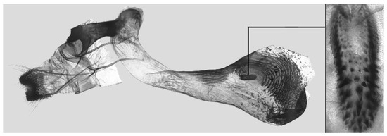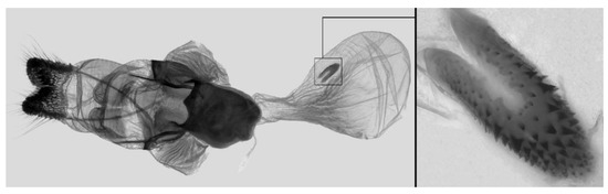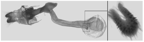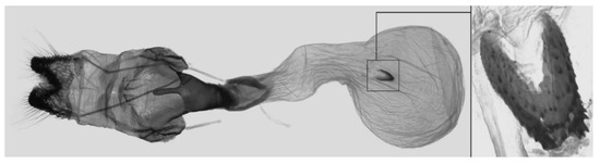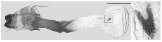 Female genitalia of Ambulyx japonica japonica, Iruma, Saitama, Japan. © The Trustees of the Natural History Museum, London, UK (downloaded from Kitching, I.J. Sphingidae Taxonomic Inventory. http://sphingidae.myspecies.info, accessed on 20 April 2024.