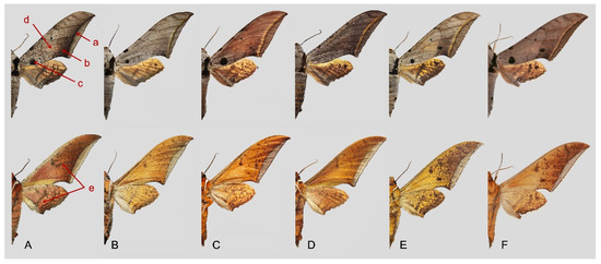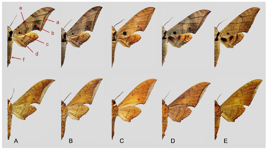 Most of the Ambulyx specimens newly collected for this study were sampled for both morphological and molecular analysis. The majority were dried in paper triangles then stored at −20 °C until used, but some were directly spread after collection to avoid abrasion of the scales on the head, thorax, and abdomen.