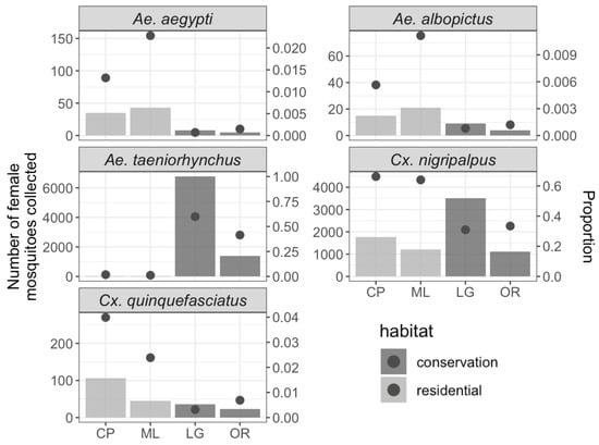 - Giordano, B.V.; Cruz, A.; Pérez-Ramos, D.W.; Ramos, M.M.; Tavares, Y.; Caragata, E.P. Mosquito communities vary across landscape and vertical strata in Indian River County, Florida. Pathogens 2021, 10, 1575. [Google Scholar] [CrossRef]