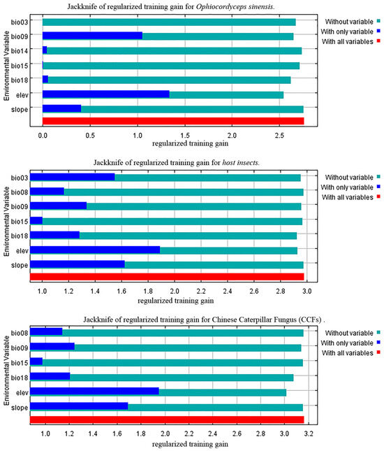 Jackknife test of O. sinensis host insects and Chinese Caterpillar Fungus for the environmental variables.