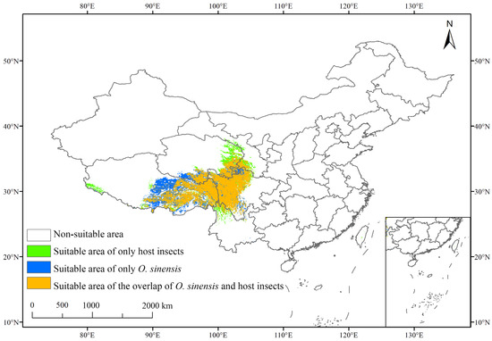 Analysis of the highly suitable distribution areas for both O. sinensis and host insects to coexist.