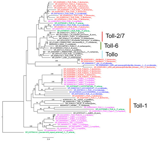 - Kanzok, S.M.; Hoa, N.T.; Bonizzoni, M.; Luna, C.; Huang, Y.; Malacrida, A.R.; Zheng, L. Origin of Toll-Like Receptor-Mediated Innate Immunity. J. Mol. Evol. 2004, 58, 442–448. [Google Scholar] [CrossRef] [PubMed]
