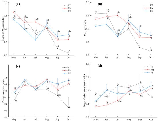 3.2.1. Temporal Dynamics of the Diversity of Darkling Beetle Communities in Different Sample Plots