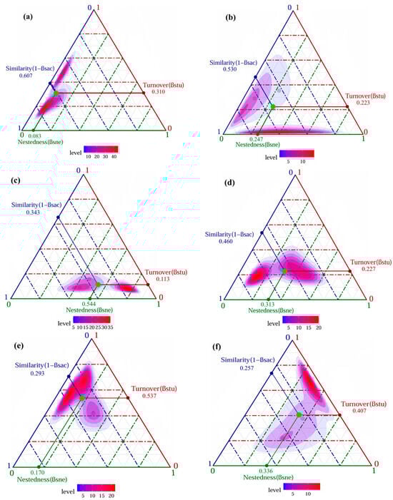 - Baselga, A. Partitioning the Turnover and Nestedness Components of Beta Diversity. Glob. Ecol. Biogeogr. 2010, 19, 134–143. [Google Scholar] [CrossRef]