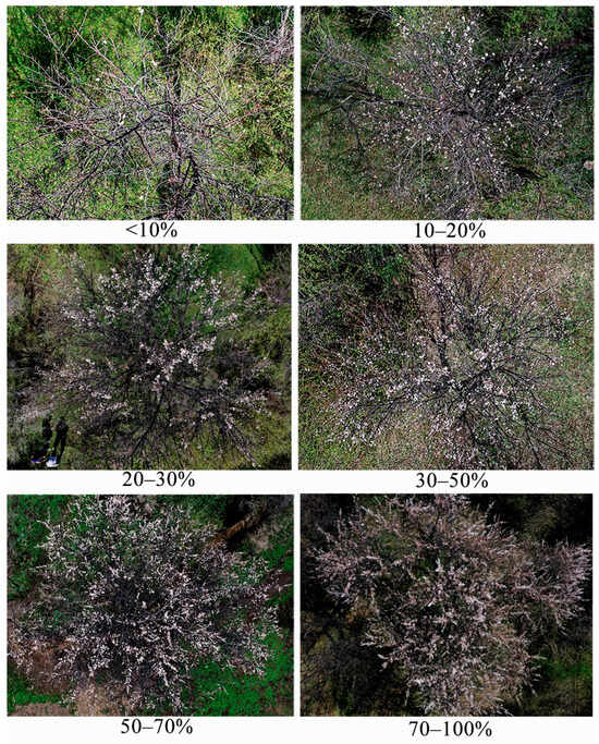 The flowering rate of wild apricot trees based on the percentage of blooms relative to the entire canopy.