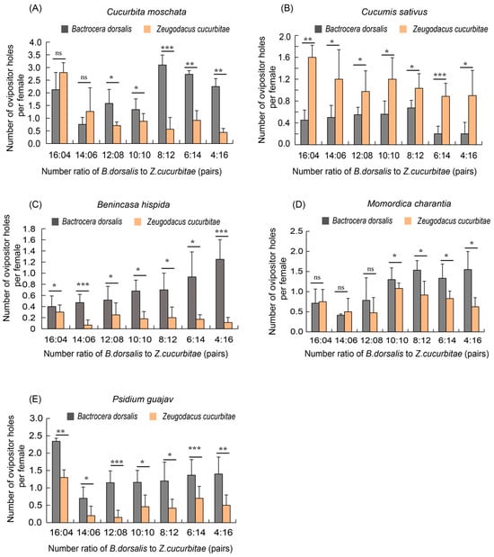 Su H, Zhao J, Yu H, Jaffar S, Hao Z, Liang G, Zeng L, Lu Y. Oviposition Competition Between Zeugodacus cucurbitae and Bactrocera dorsalis Adults in Five Hosts. Insects. 2025; 16(4):419. https://doi.org/10.3390/insects16040419