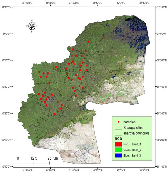 Map showing the location of sampling sites in Sharqia governorate in Egypt (map source: IESR, GIS 113unit, and Google map).