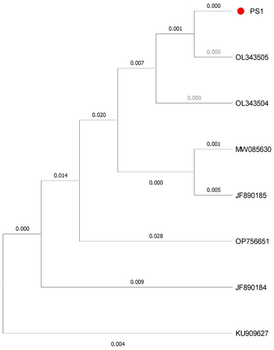 - Kumar, S.; Stecher, G.; Suleski, M.; Sanderford, M.; Sharma, S.; Tamura, K. MEGA12: Molecular Evolutionary Genetic Analysis Version 12 for Adaptive and Green Computing. Mol. Biol. Evol. 2024, 41, msae263. [Google Scholar] [CrossRef] [PubMed]