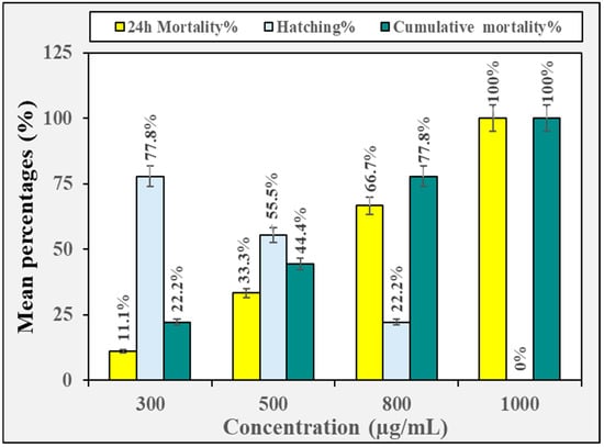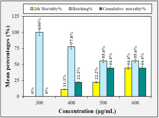 A biosafety index (BI) greater than 1 indicates that the treatment is safe for non-target organisms. In contrast, a BI of less than 1 suggests that the treatment is harmful to non-target organisms. The study was approved by the Research Ethics Committee at King Saud University, Riyadh, Saudi Arabia, with the approval reference number KSU-SE-23-61 dated 21 June 2023.