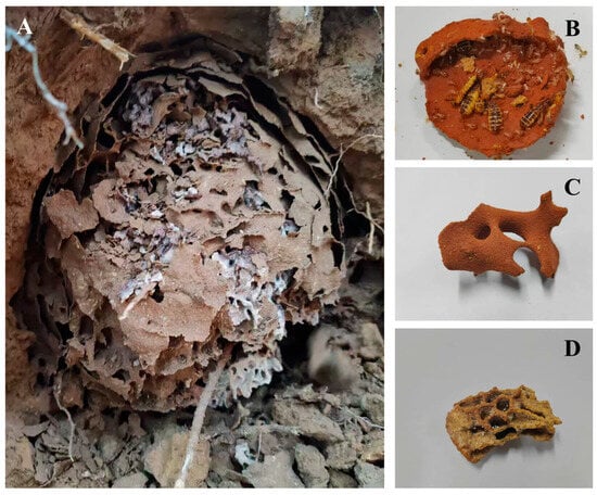 - Chouvenc, T.; Sobotník, J.; Engel, M.S.; Bourguignon, T. Termite evolution: Mutualistic associations, key innovations, and the rise of Termitidae. Cell. Mol. Life Sci. 2021, 78, 2749–2769. [Google Scholar] [CrossRef]