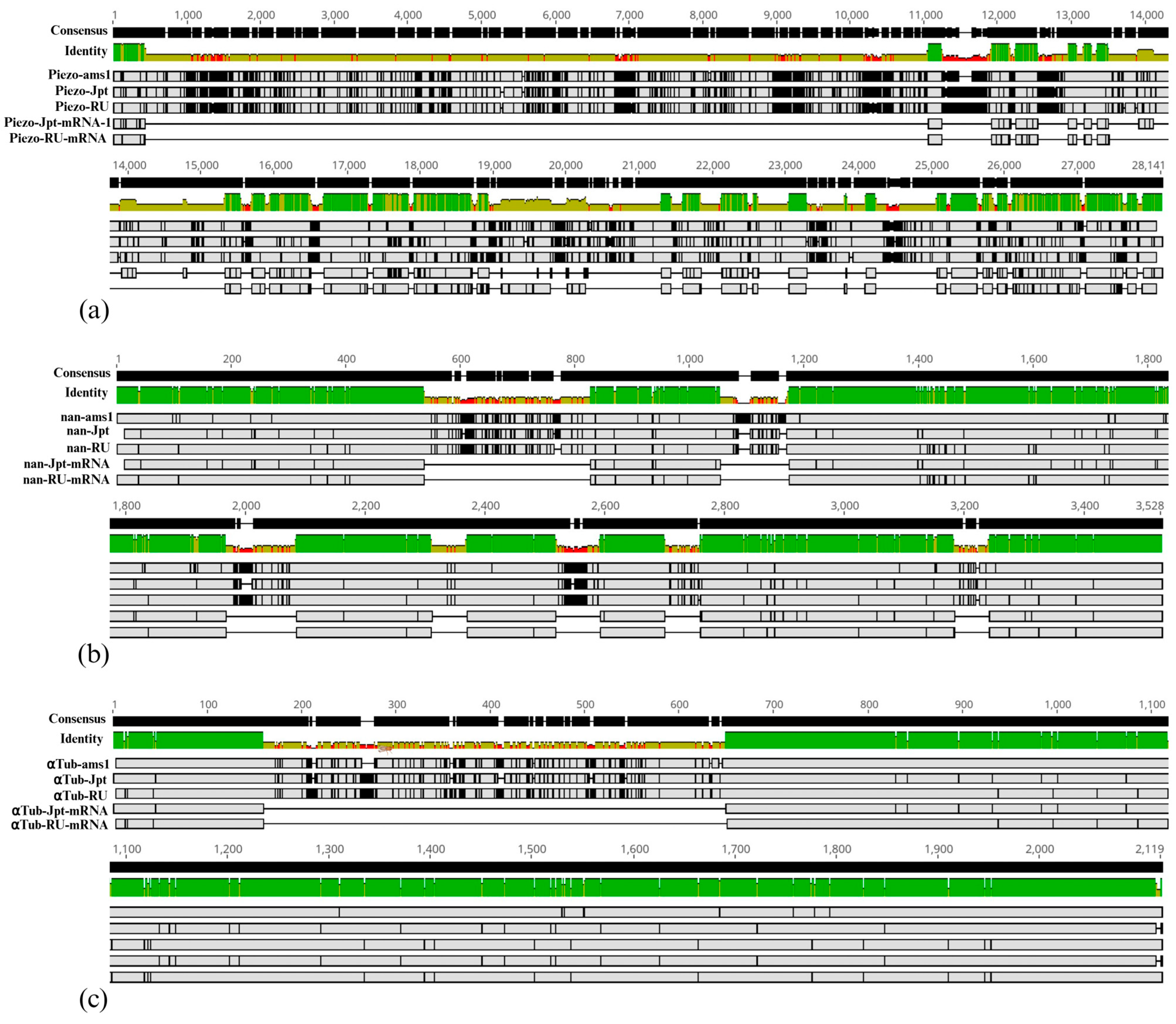 - Edgar, R.C. MUSCLE: A multiple sequence alignment method with reduced time and space complexity. BMC Bioinform. 2004, 5, 113. [Google Scholar] [CrossRef]