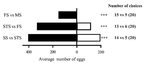 2.5. Oviposition Selectivity of S. frugiperda Females